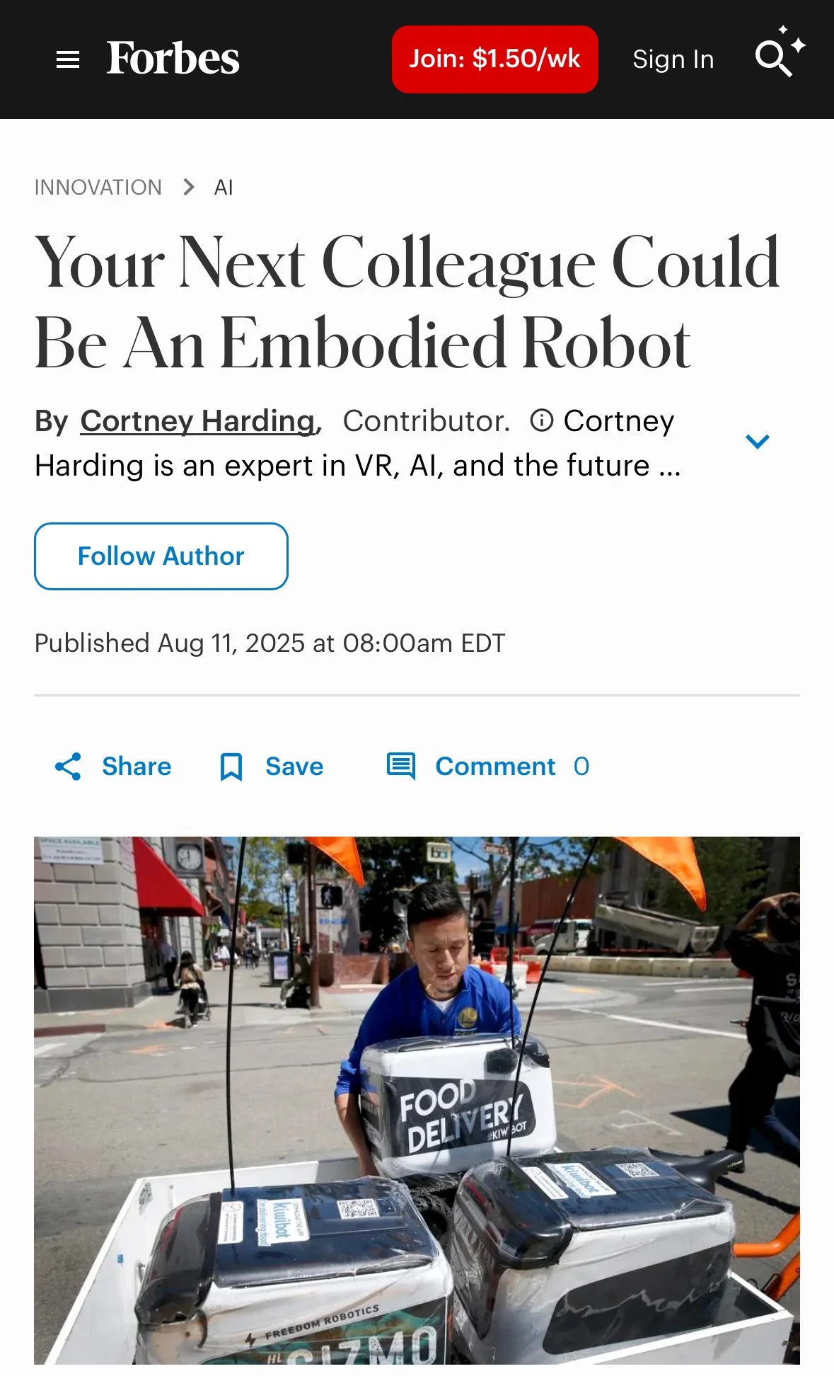 Despite enjoying a Waymo ride in San Francisco (and not taking one in LA, for obvious reasons), we're still a long way away from fully autonomous vehicles going mainstream. Waymo is only in a handful of cities and only on certain roads; even as it expands to new markets, it's going to be a long road (hah) to full adoption. I occasionally see delivery robots in parts of LA and the Bay Area, but they certainly haven't been widely adopted. And humans continue to do all sorts of dangerous, monotonous, and generally un-fun tasks.