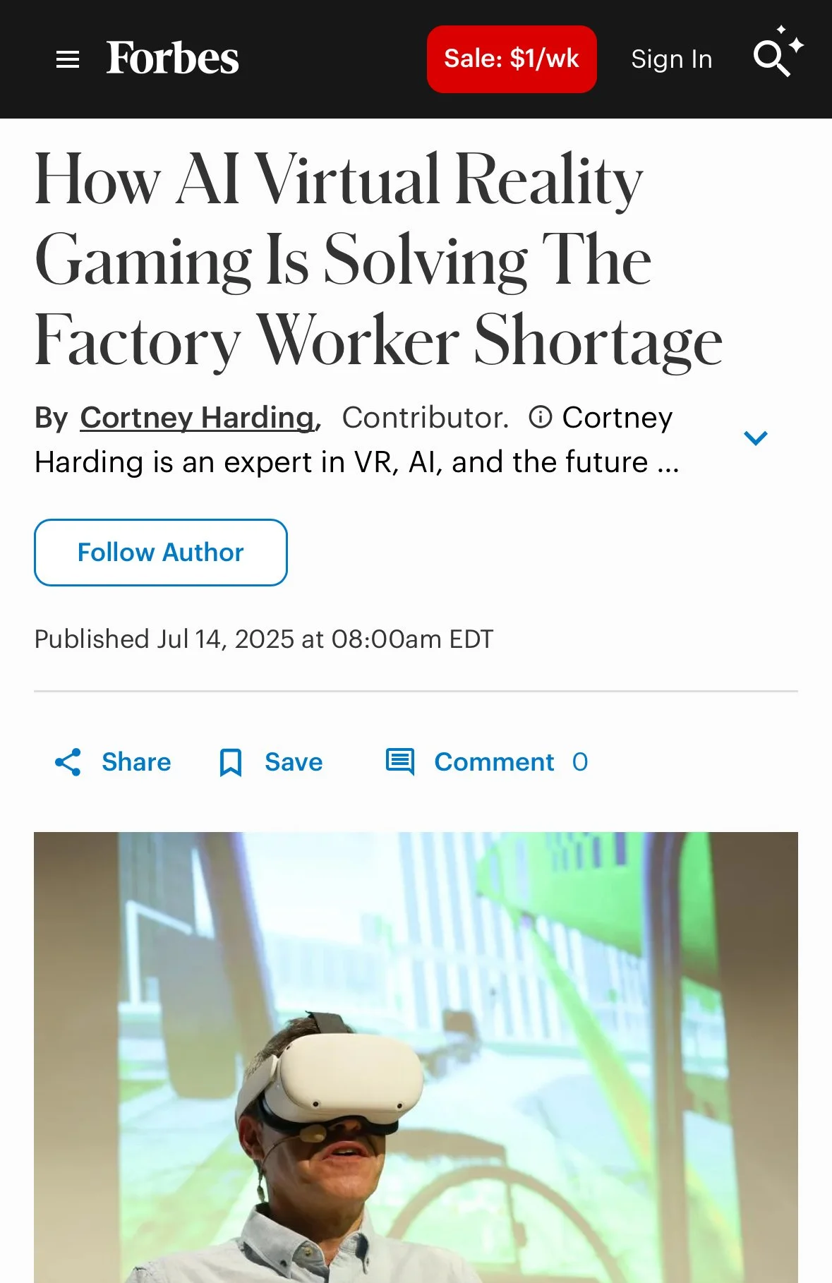 Factory work can be extremely complex and require a lot of training, and many replacement workers are simply not able to just jump right in. If factories are going to stay open, we need a way to upskill workers, ASAP. There is plenty of labor in the market, including formerly incarcerated folks, folks struggling with addiction, and people who might want to make a career change. But they all need to train quickly and at scale. Luckily, as I wrote in my snap post about the article, there is technology that can do exactly that.